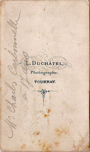 Duchatel - Carte de visite - Jeune homme debout tenant en main droite un chapeau haut-de-forme