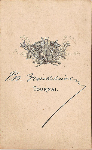 Brackelaire - Carte de visite - Femme en crinoline au bras droit reposant sur une balustrade