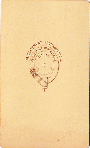 Brackelaire - Carte de visite - Femme debout bras droit accoudé au socle d'une colonne