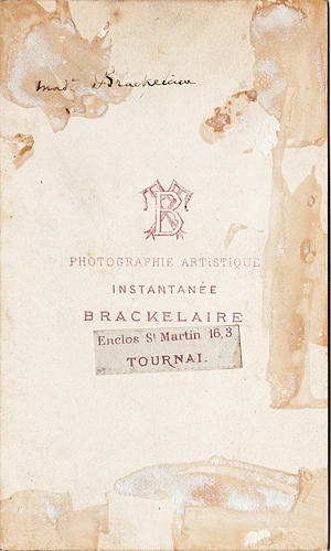 Brackelaire - Carte de visite - Femme debout appuyée sur le dossier d'une chaise